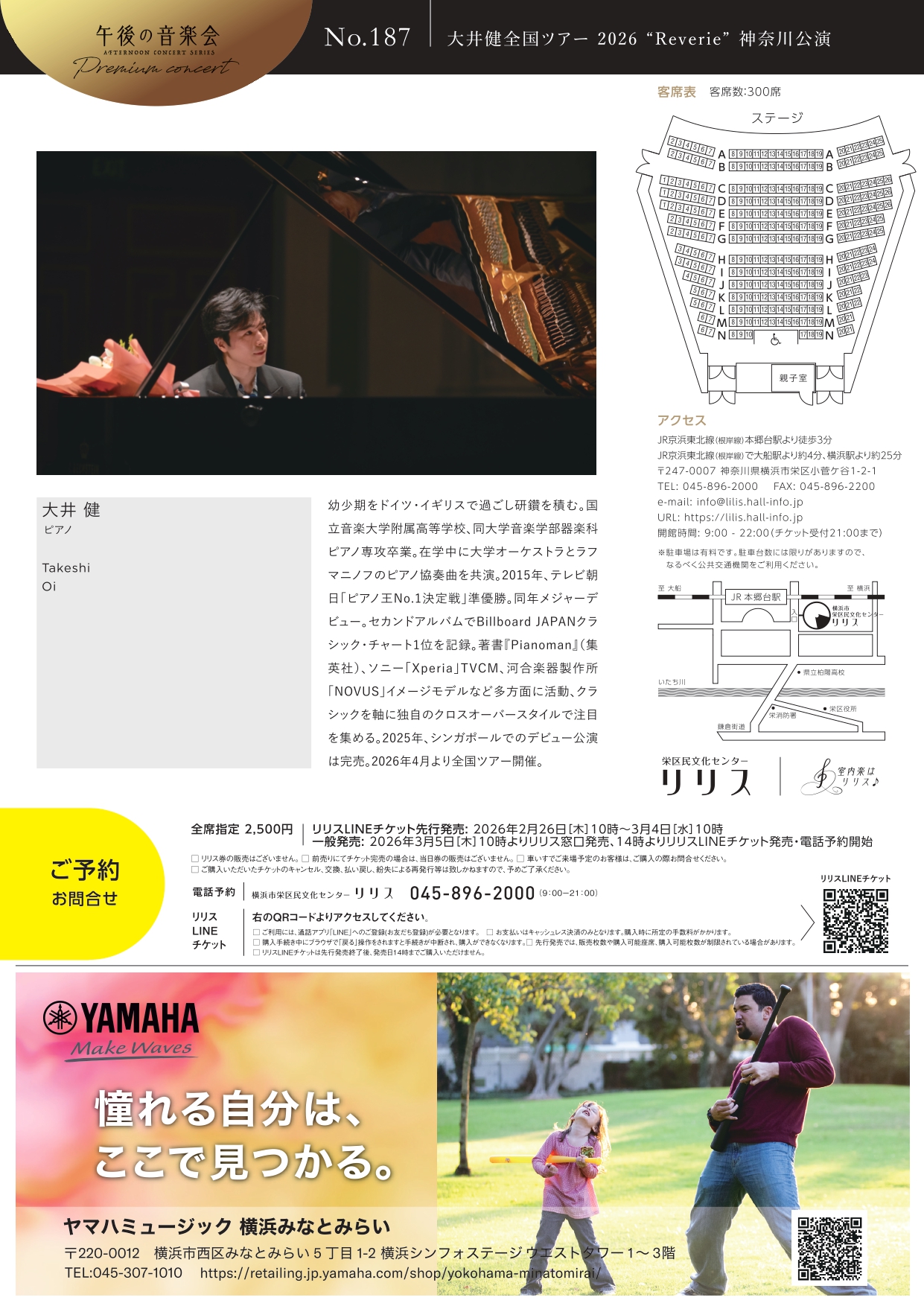 午後の音楽会187回≪プレミアムコンサート≫ 大井健全国ツアー2026“Reverie”神奈川公演
