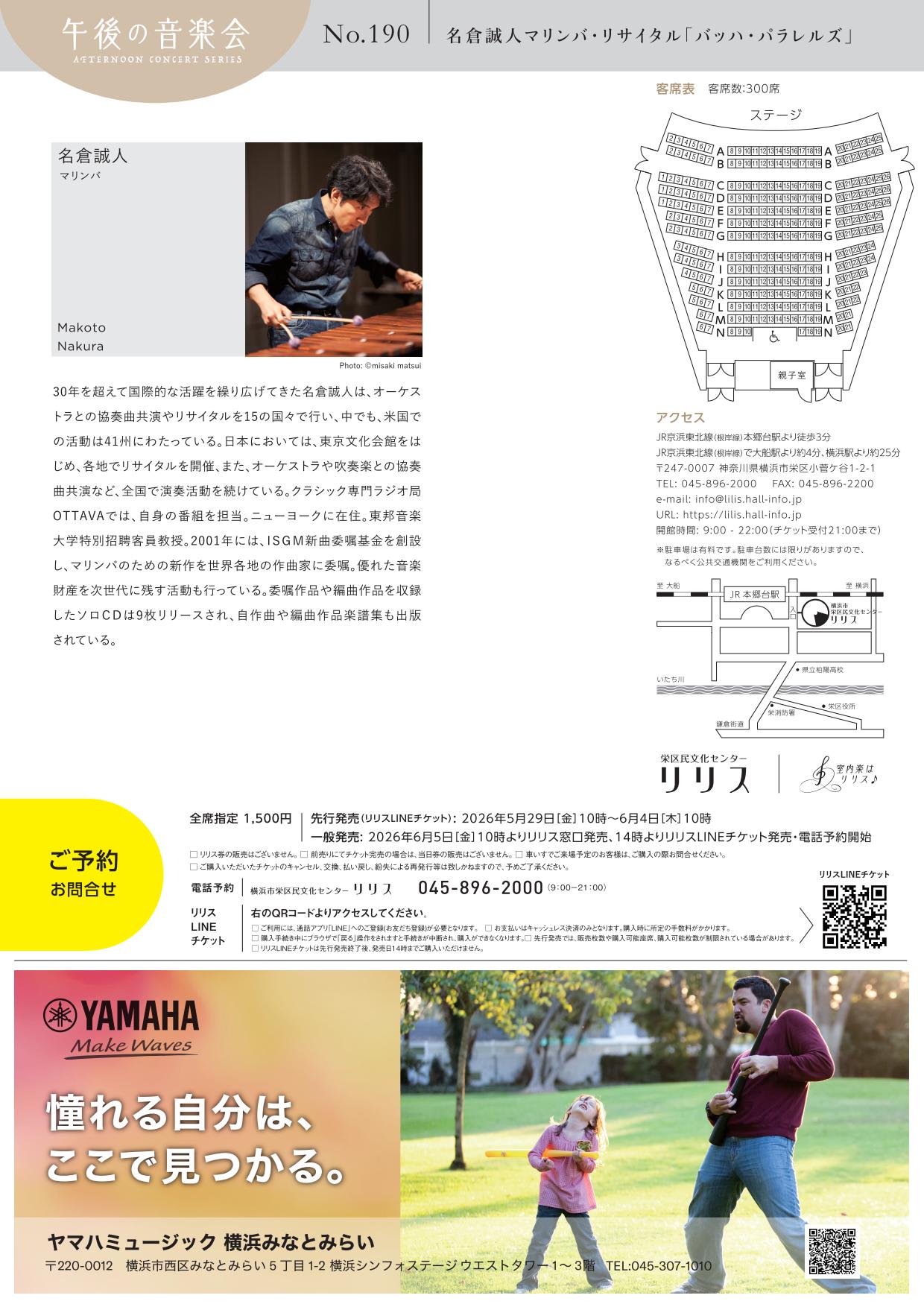 午後の音楽会 第190回 名倉誠人マリンバ・リサイタル「バッハ・パラレルズ」